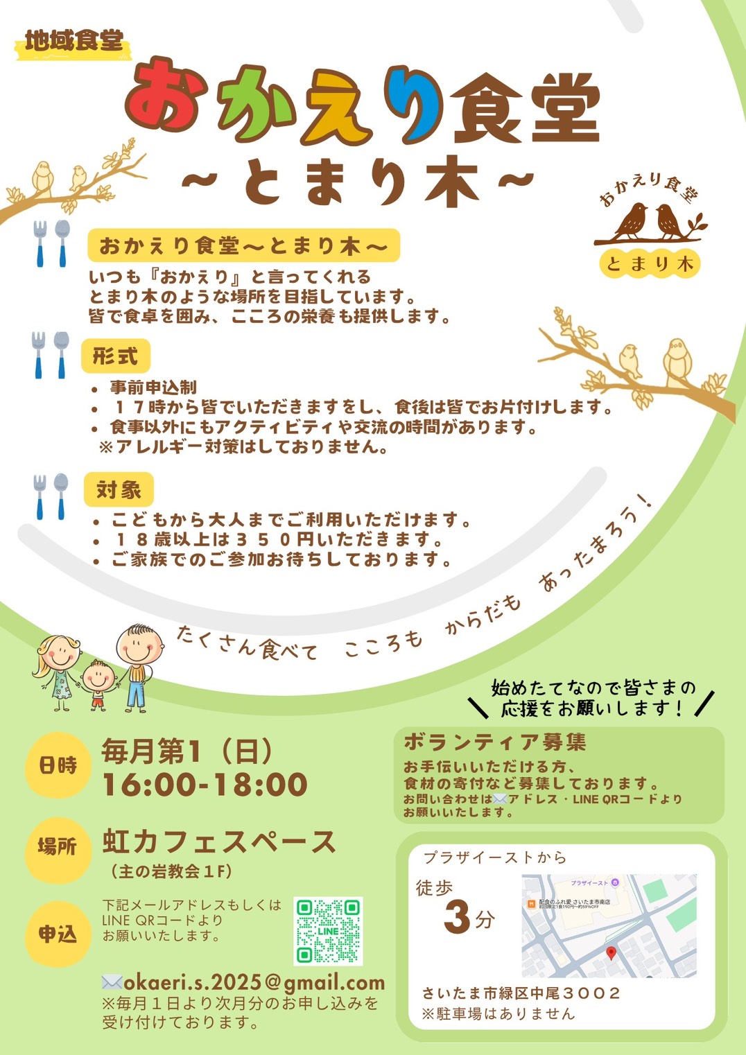 そんな思いから、おとなもこどもも参加できる“おかえり食堂~とまり木~”をはじめようと決意しました。